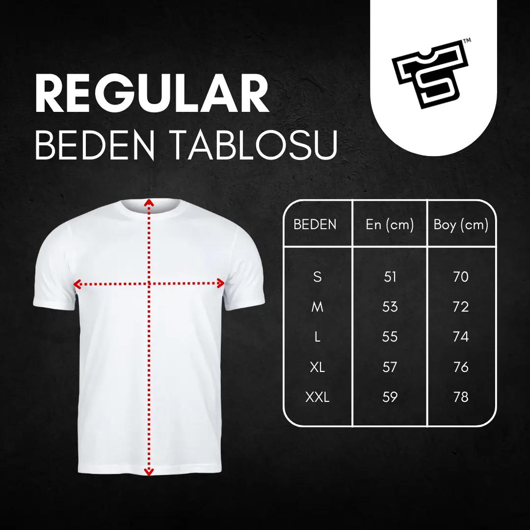 Doğru bedeni seçmek, tişörtün duruşunu tamamen değiştirir. Bu yüzden Regular kalıp için ölçüleri aşağıdaki görselde paylaştık.